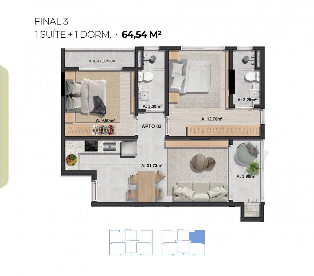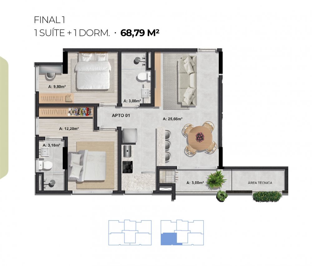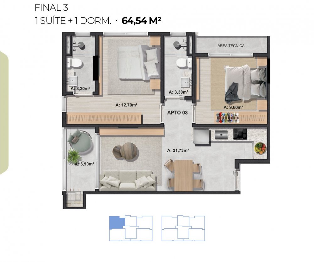 Cada unidade foi cuidadosamente planejada para oferecer o máximo de conforto e praticidade: