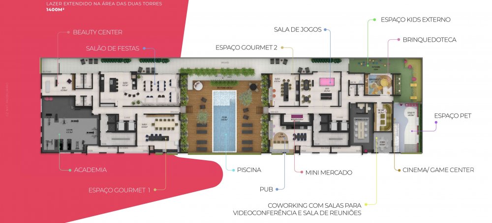 - **Cinema/Game Center**: Entretenimento para todas as idades.