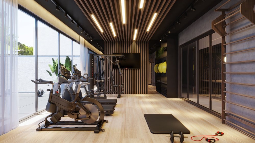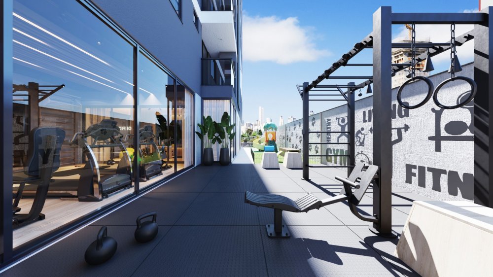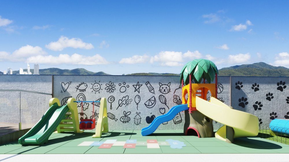 Academia, brinquedoteca, playground e quadra de padel para todas as idades.