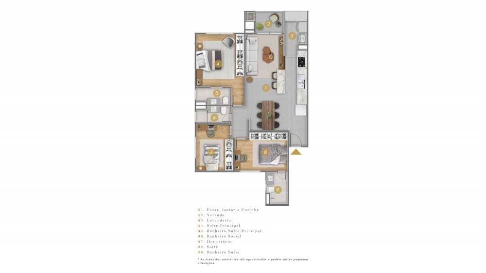 Área privativa a partir de 66,00 m², totalizando 108,00 m² de bem-estar.