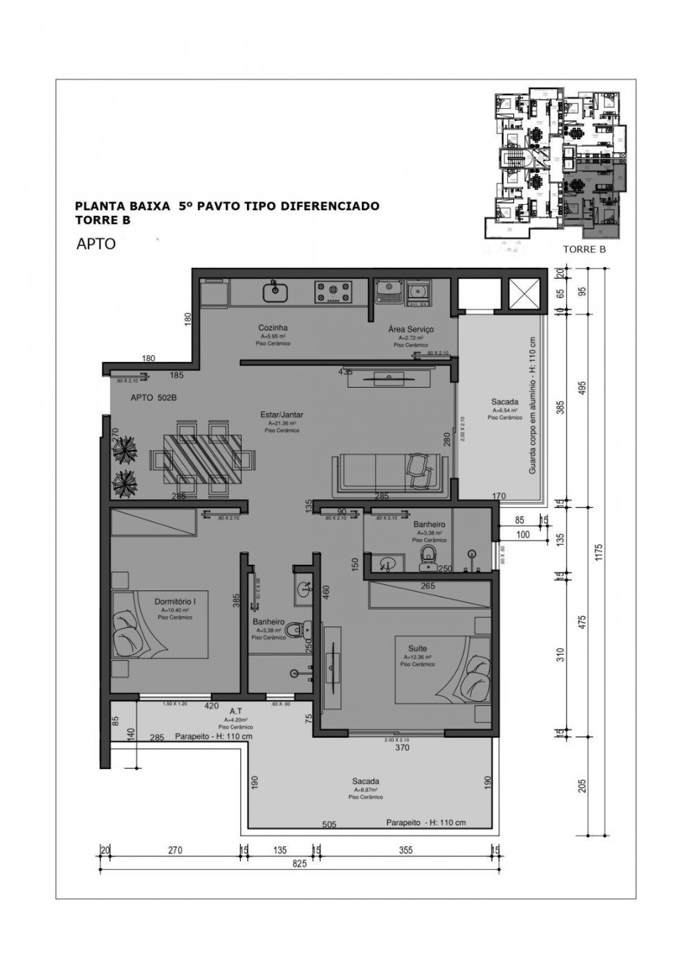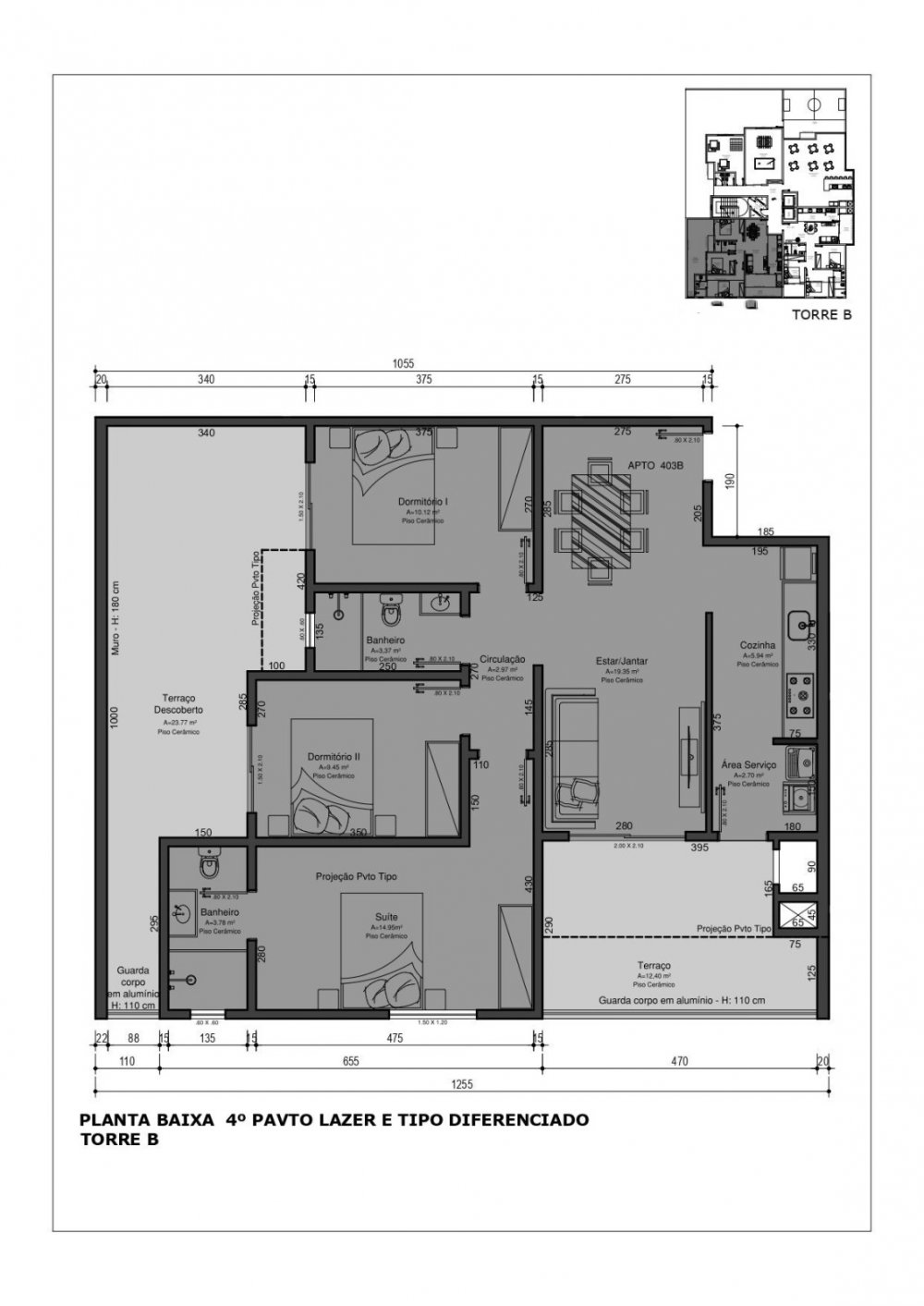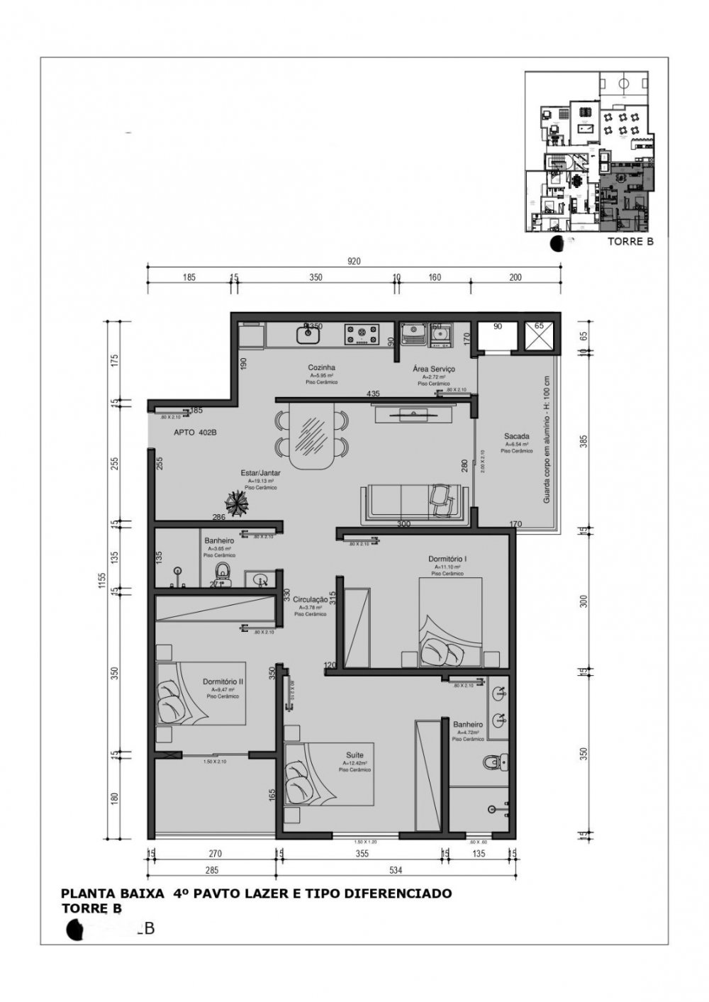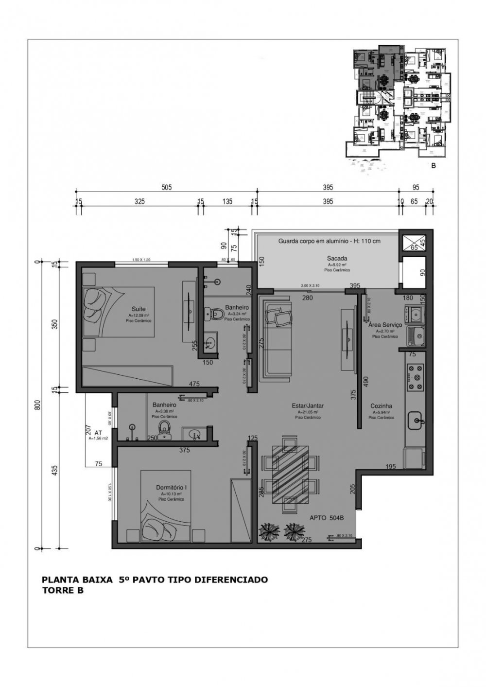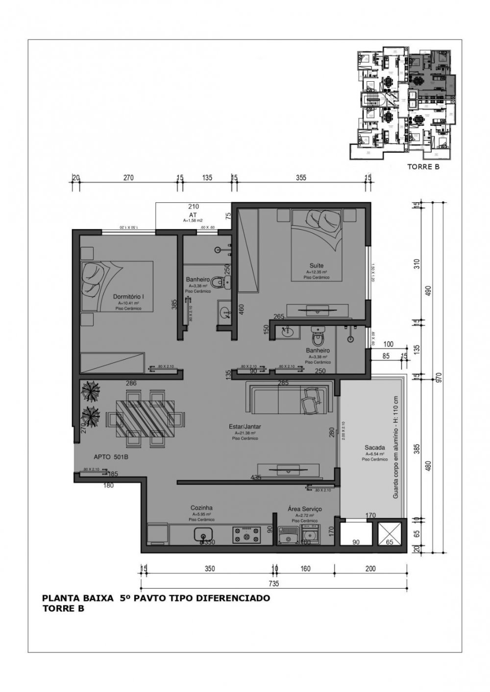 Área Total: 101,71 m²Área Privativa: 76,73 m²