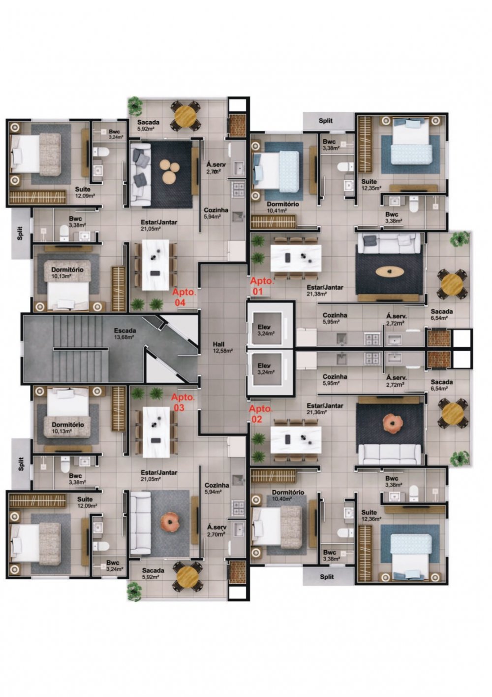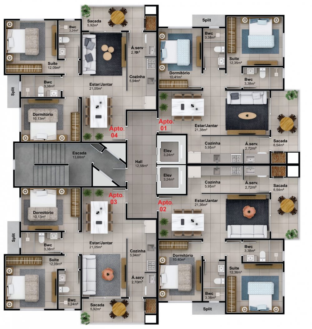 04 apartamentos por andar
