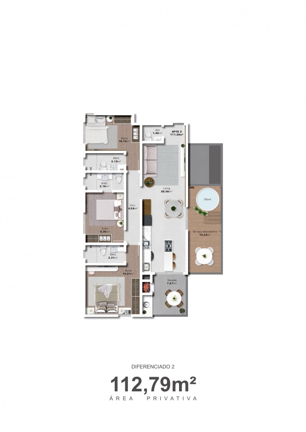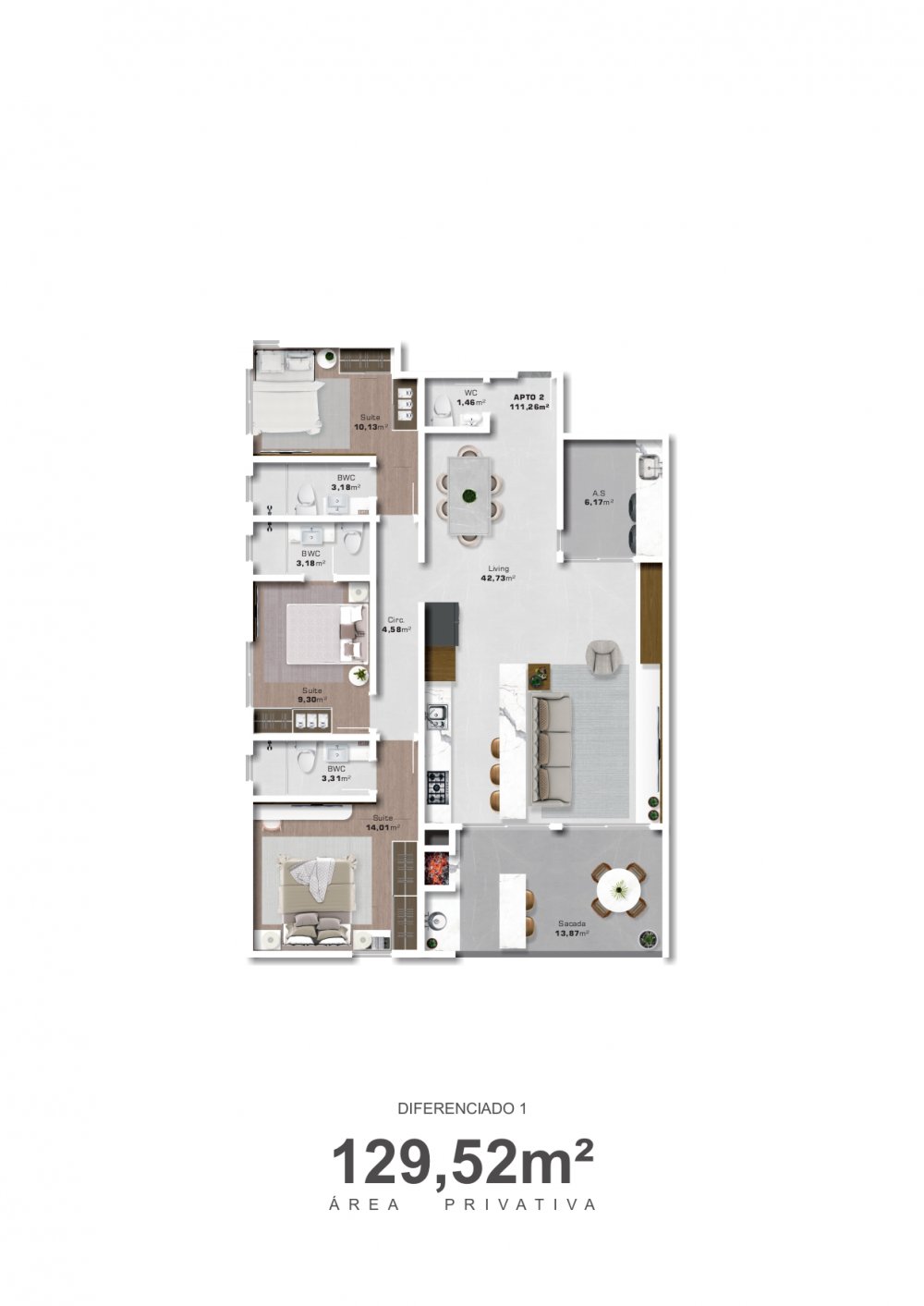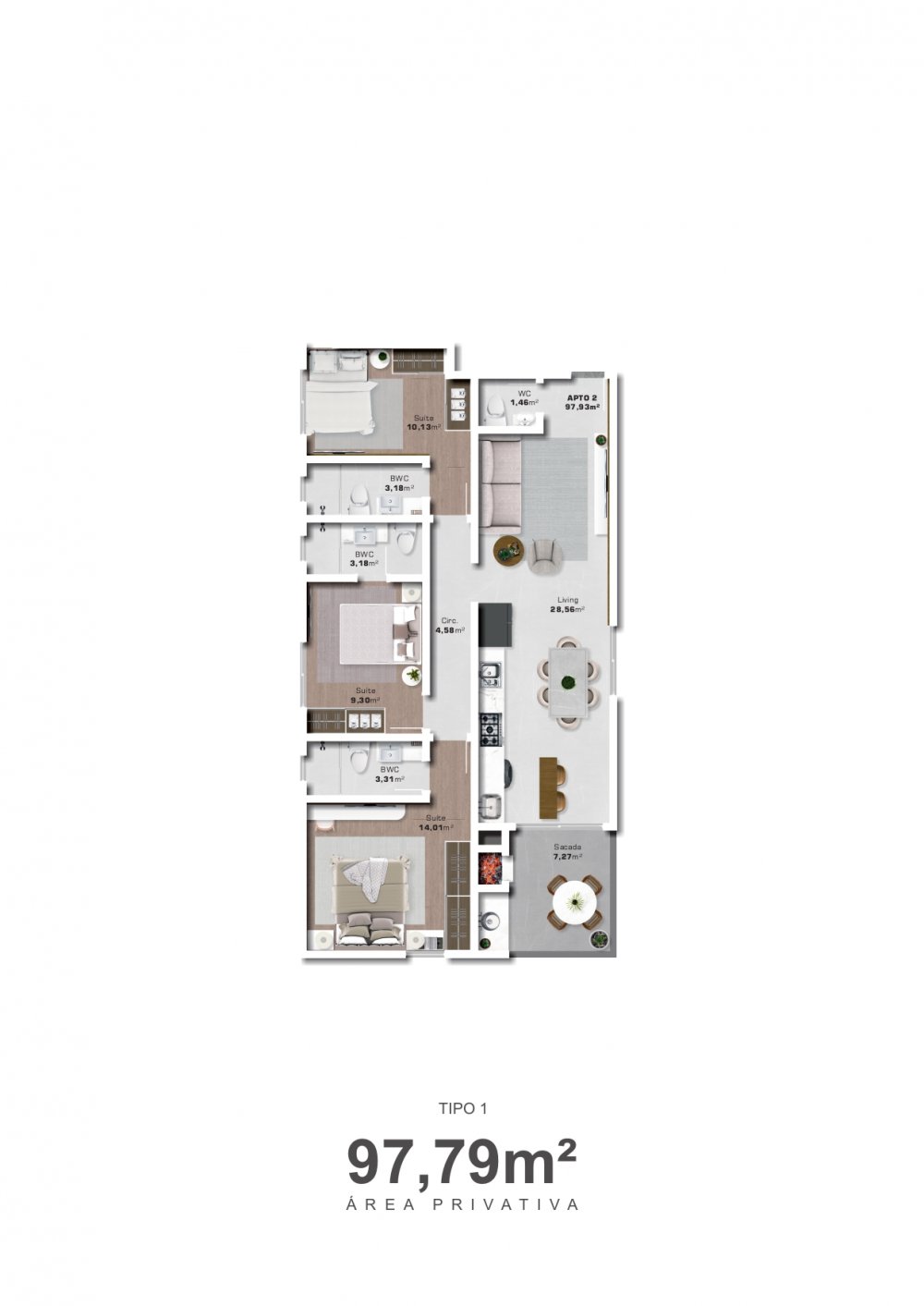 - Área Privativa: 97,79 m² de puro conforto e sofisticação.