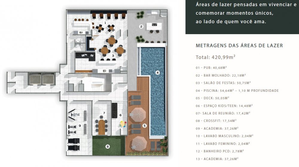 - Pub & Bar Molhado: Momentos de descontração e lazer.