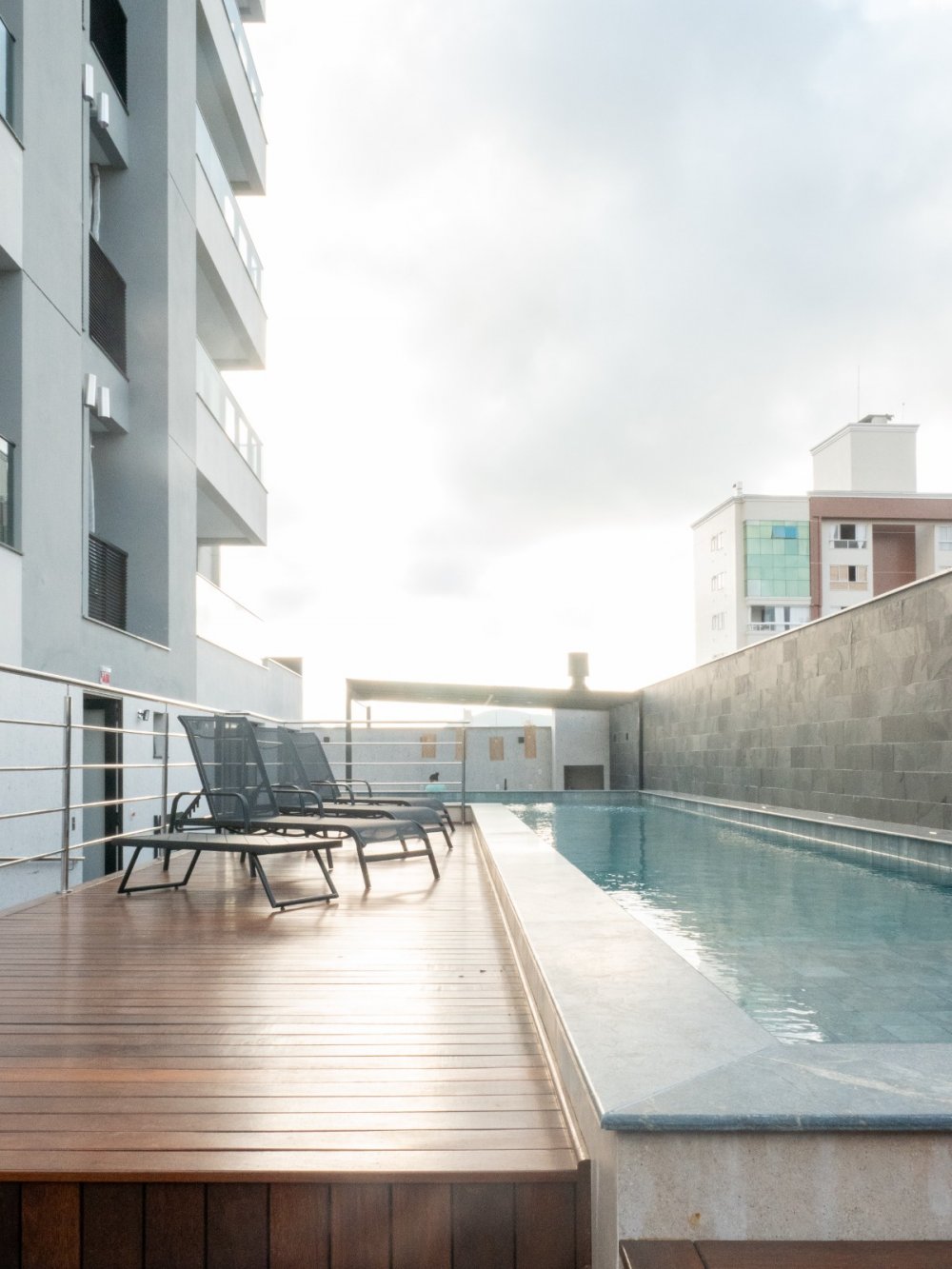 - Piscina com Borda Infinita e Deck de Madeira: Um verdadeiro oásis urbano.