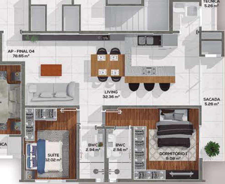 - Área Privativa de 78,65 m²: Amplo espaço para viver bem.