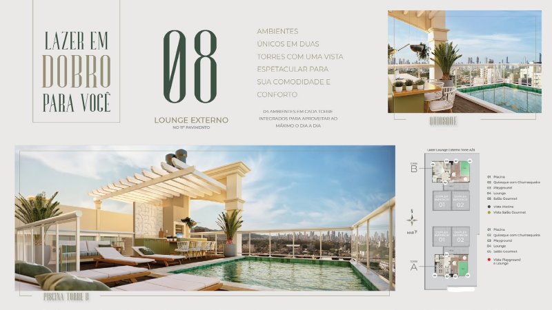 Este projeto oferece 2 torres com 12 pavimentos cada, apresentando um acabamento de qualidade superior. Com apenas 4 apartamentos por andar, a privacidade e o conforto são prioridades. Explore os 14 espaços de lazer e aproveite a vida em grande estilo.