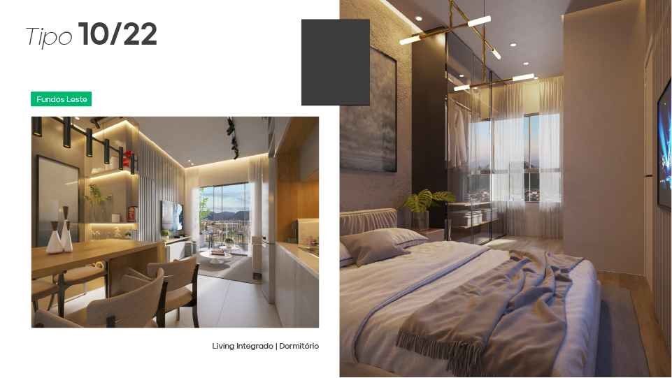* Apto Tipo 40 m² - Demi-suíte, Living integrado e sacada.