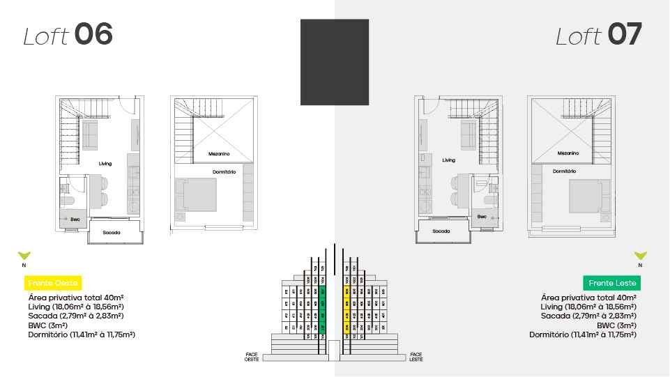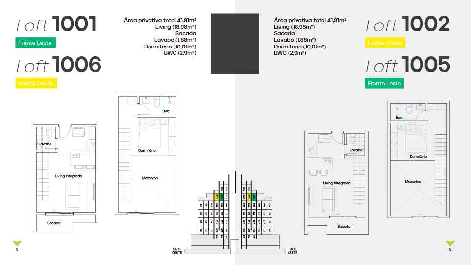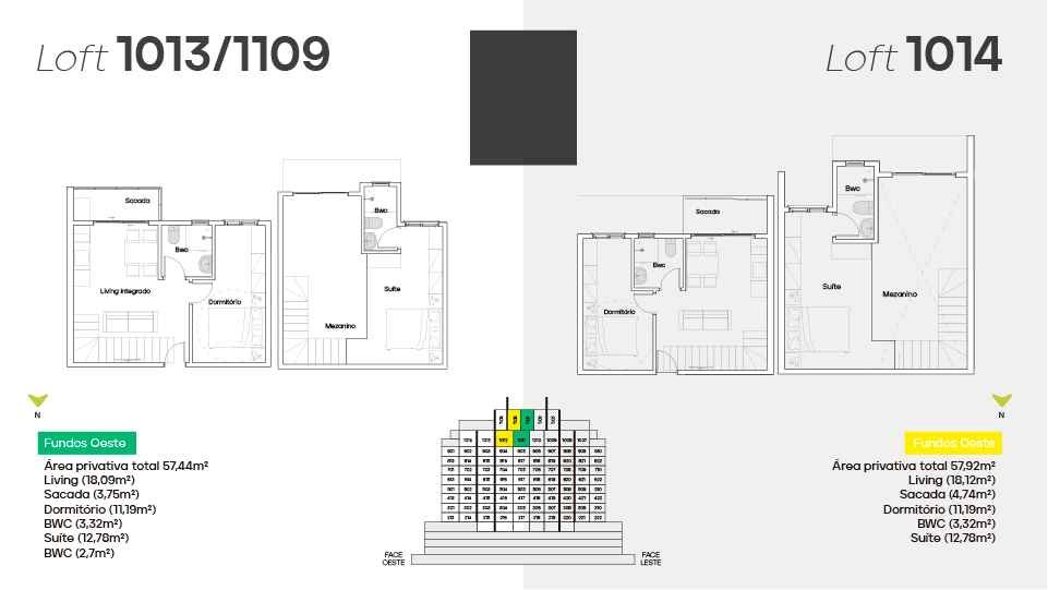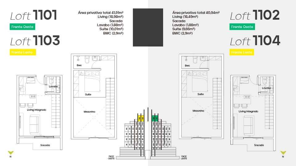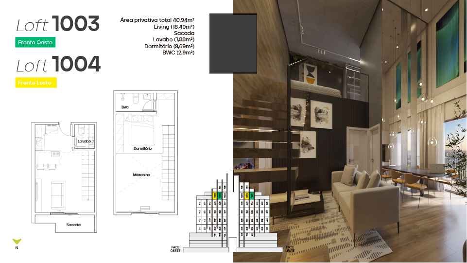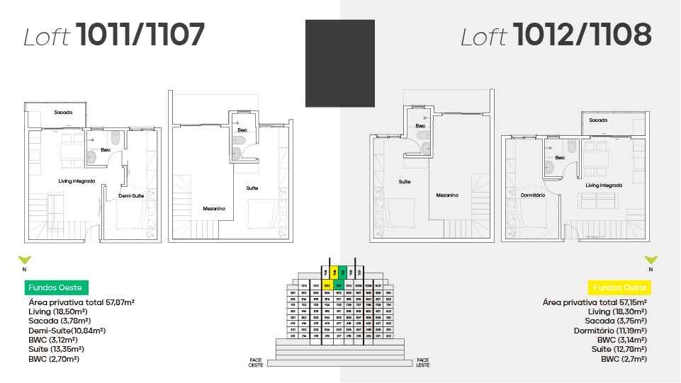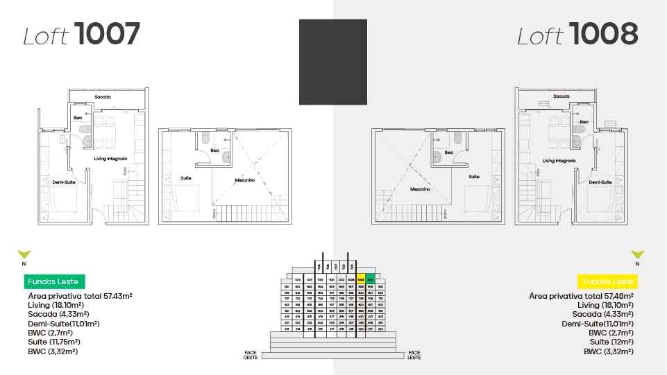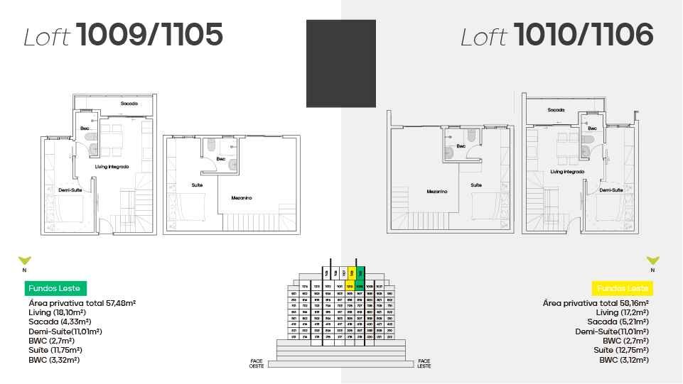 * Loft diferenciado a partir de 57 m² - 1 suíte no mezanino, 1 demi-suíte, living integrado e sacada.