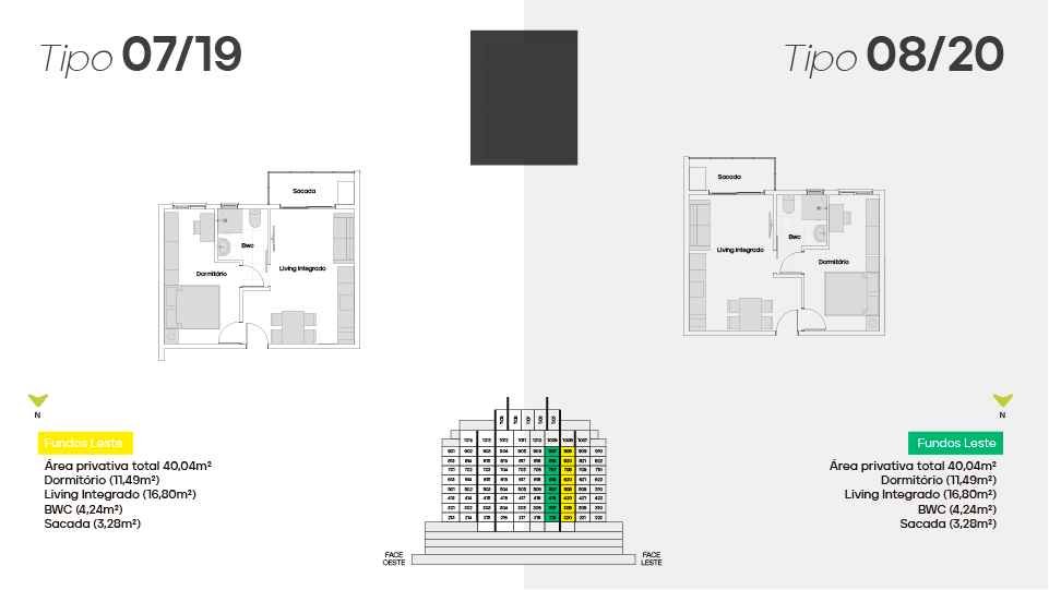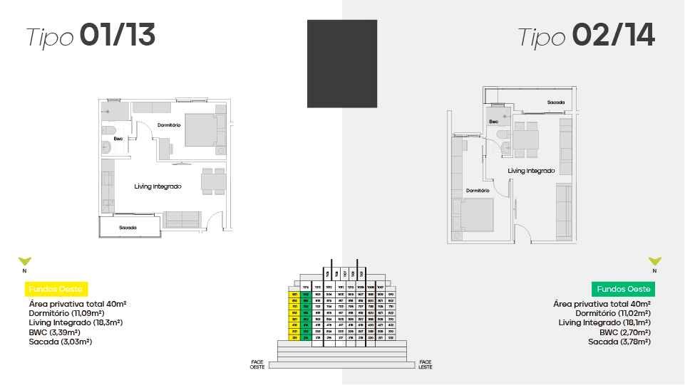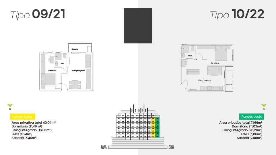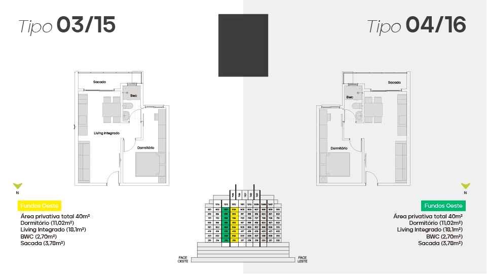 17 pavimentos, 163 aptos, 19 unidades Duplex diferenciados, 3 Pavimentos de garagem, 5 Salas comerciais, 3 elevadores e 34 ambientes exclusivos.